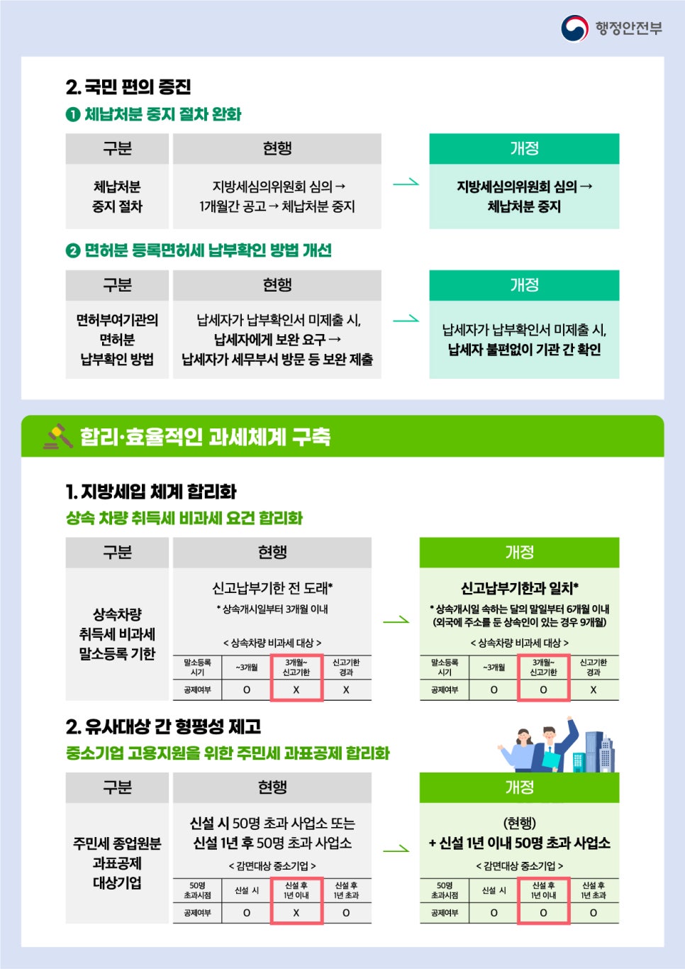 농어촌 지역의 주택 개량사업에 대한 취득세 감면이 3년 더 연장됩니다. 이는 농어촌 지역의 경쟁력을 강화하고, 인구 유입을 촉진하기 위한 조치입니다. 또한, 과밀억제권역 외 지역으로 이전하는 법인 및 공장에 대한 취득세와 재산세 감면도 3년간 연장됩니다.